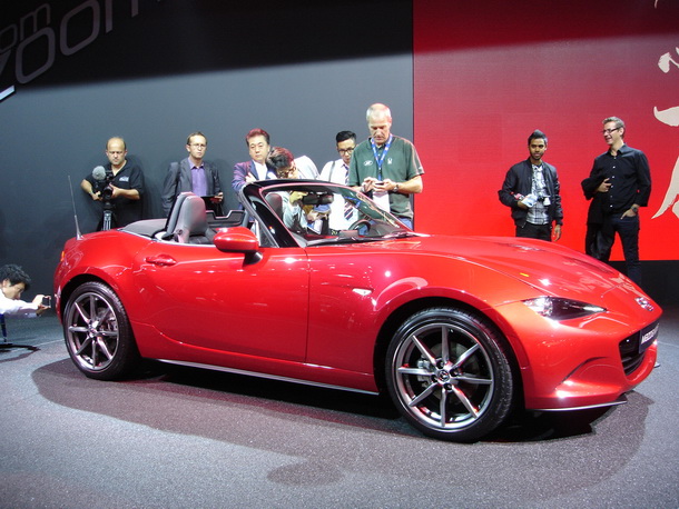 El principal atractivo de Mazda en el Salón de París ha sido su nuevo MX-5, el icónico roadster de la marca. Su nuevo diseño “KODO, alma en movimiento” ha cambiado sus líneas redondeadas por otras más afiladas. Estas nuevas líneas se pueden apreciar tanto con la capota puesta como en modo descapotable. Los nuevos motores SKYACTIVE, la reducción de peso de unos 100 kg y el reparto de peso entre ejes 50-50 permiten una conducción dinámica y divertida.