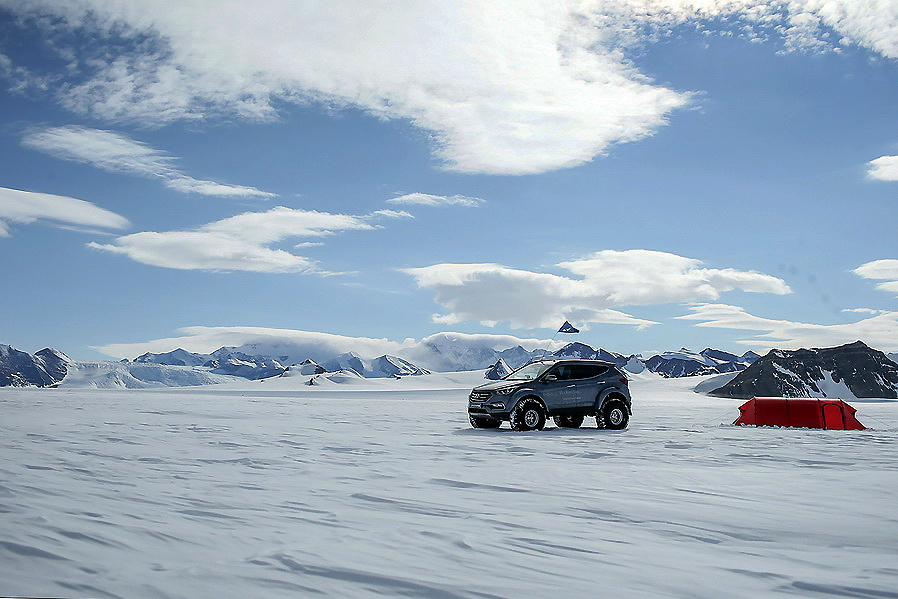 Patrrick Bergel y el Huyndai Santa Fe recorrió junto con su equipo más de 5.800 kilómetros en condiciones muy adversas con temperaturas de hasta -28 grados atravesando el continente desde Union Camp hasta McMurdo, completando el viaje que Shackleton realizó hace más de 100 años.