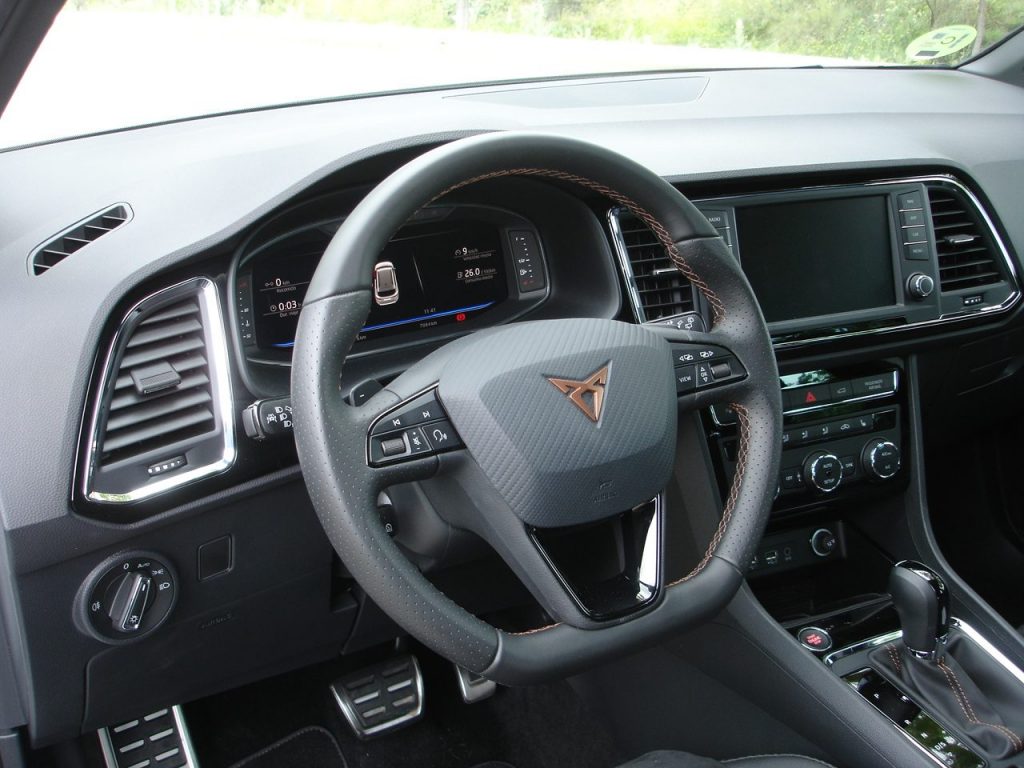 En el interior los cambios son incluso menores, ya que seguramente podremos encontrar, salvo las denominaciones en asientos, y logotipos, otros Seat Ateca con similar imagen de lujo. Asientos de Alcántara, instrumentación digital muy conseguida y la posible selección de diversos modos de conducción, situados en un mando giratorio en la consola central, son los elementos que lo diferencian.