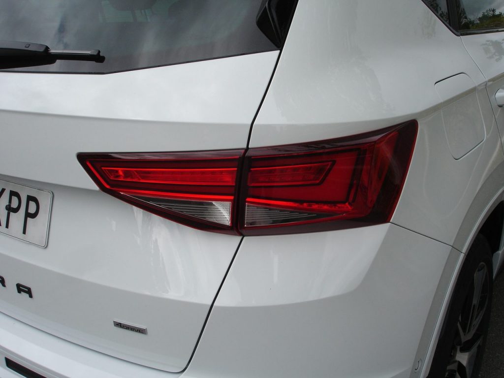Los cambios en el estilo son muy discretos, lo que convierte al Cupra Ateca en un coche que puede pasar casi deapercibido, lo que puede ser un aspecto interesante para la mayoría de sus compradores, que pretenden una satisfacción personal, más que llevar una continua tarjeta de visita a la vista del resto de los conductores. Solo los logotipos, llantas exclusivas y ligeros detalles de carrocería le diferencian de su hermano de Seat. Destacan un spoiler trasero sobre la luneta, el paragolpes frontal y sobre todo el paragolpes trasero, en el que se incluyen una zona baja muy deportiva presidida por cuatro salidas de escape. Los que sean poco detallistas les costará diferenciar este modelos del resto de Seat Ateca que vean por las carreteras.