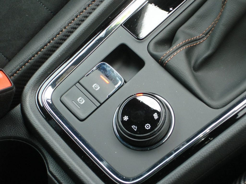 Puestos en marcha lo primero que llama la atención es su sonido. Por supuesto no hay que mencionar que el Cupra Ateca lleva tracción integral y cambio DSG de 7 relaciones. Con estos elementos y el propulsor de 300 CV de potencia se forma un conjunto verdaderamente efectivo. Lo que sucede es que en lo que más destaca el Cupra Ateca es en su comportamiento gracias a las suspensiones. Es sin duda lo que más nos ha gustado. Pasar 300 CV al suelo como lo hace el Cupra Ateca es sin duda un enorme mérito de los ingenieros de Seat. El selector de mandos nos permite elegir una posición normal o confort, que en determinados apoyos, sin excedemos los limites, nos muestra movimientos parásitos que nos están indicando a voces que estamos en un programa tranquilo y suave. Si pasamos la panca a la posición sport ya apreciamos un cambio importante. No solo en las suspensiones, sino también en la entrega de potencia y en el funcionamiento del cambio. Más extraña es la posición Cupra, mientras que tiene otras dos preparadas para ajustarnos a las necesidades de conducción fuera del asfalto o con nieve.