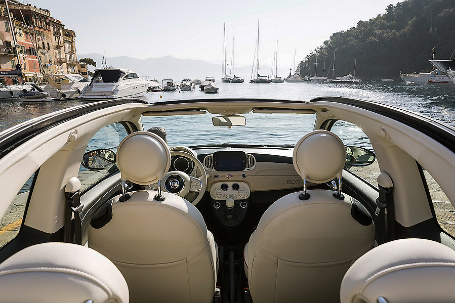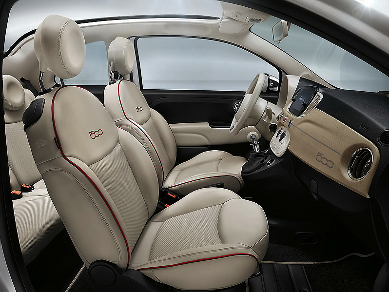 La misma exclusividad que el Fiat 500 Dolcevita presenta en su exterior, también lo traslada al interior. Hace además un guiño al mundo de la navegación como es su salpicadero en madera. Monta nuevos asientos en piel Frau en color marfil y con el logotipo 500 bordado con ribetes en rojo. Las alfombrillas también son del mismo color de la tapicería.