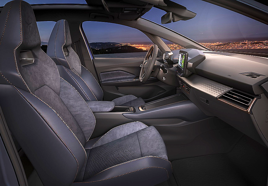 El interior está diseñado para englobar la filosofía CUPRA, es decir, una atmósfera de deportividad total. Los asientos tipo Bucket o el nuevo volante con botón para seleccionar los modos de conducción y activar el modo CUPRA, son una muestra de ello. También destacar la calidad de los materiales y la terminación de los mismos.