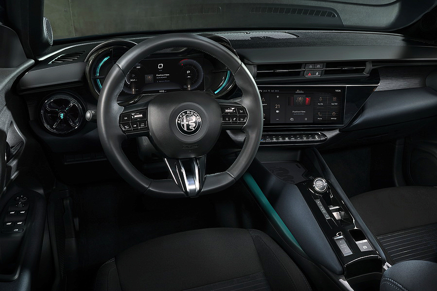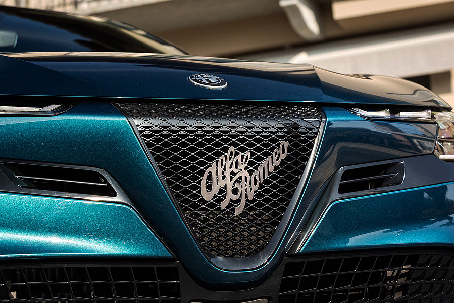 – Parrilla “scudetto” icónica con dos variantes: Leggenda (parrilla negra con el logotipo de Alfa Romeo en cursiva) y Progresso (diseño moderno inspirado en el Biscione).
