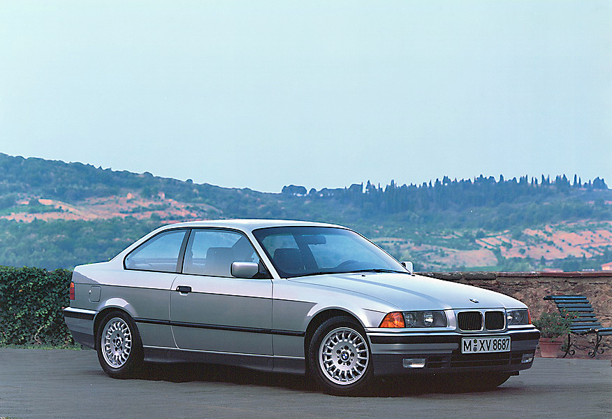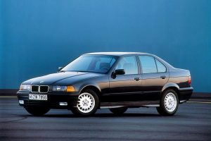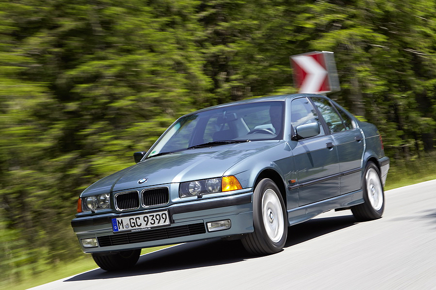 Lanzada en 1990, esta generación destacó por su diseño elegante y mayor espacio interior. Disponible desde el inicio en versión de cuatro puertas, introdujo el Coupé (1992), Cabrio (1993) y Compact (1994). Los motores de seis cilindros con tecnología VANOS y diésel turboalimentados (como el BMW 325tds, 143 CV) mejoraron rendimiento y eficiencia. El chasis optimizado y sistemas como ABS y ASC+T elevaron la seguridad y dinámica. Vendió 2.75 millones de unidades, consolidando su liderazgo.