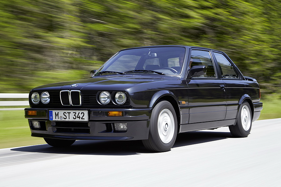 Presentada en 1982, esta generación trajo mayor diversidad con variantes de cuatro puertas (1983), Cabrio (1985) y Touring (1987). Su diseño aerodinámico mejoró un 15% la resistencia al viento, y los motores evolucionaron con inyección electrónica y el primer diésel (BMW 324d, 86 CV). En 1985, el BMW 325iX introdujo tracción total, y el BMW M3 (200 CV) marcó un hito en competición. Con 2.34 millones de unidades vendidas, esta generación amplió significativamente el alcance de la Serie 3.