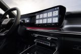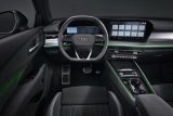 El sistema de info-entretenimiento utiliza Android Automotive OS, con aplicaciones de terceros como YouTube integradas en la Audi Application Store. El asistente de voz con inteligencia artificial permite controlar funciones del vehículo. En términos de sostenibilidad, el interior utiliza materiales reciclados, como poliéster 100% reciclado en tejidos y Econyl en alfombrillas, procedente de redes de pesca y residuos industriales.