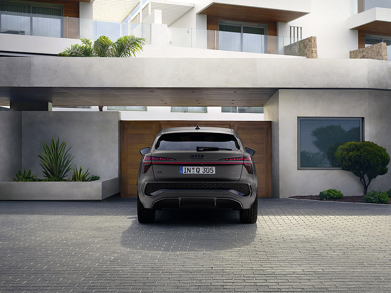 La versión Sportback, con una línea de techo 29 mm más baja, aporta una silueta más deportiva y ágil, combinando la practicidad de un SUV con la elegancia de un coupé. La zaga incorpora opcionalmente luces traseras OLED digitales con una franja LED continua y los aros Audi iluminados, una novedad en el segmento compacto.