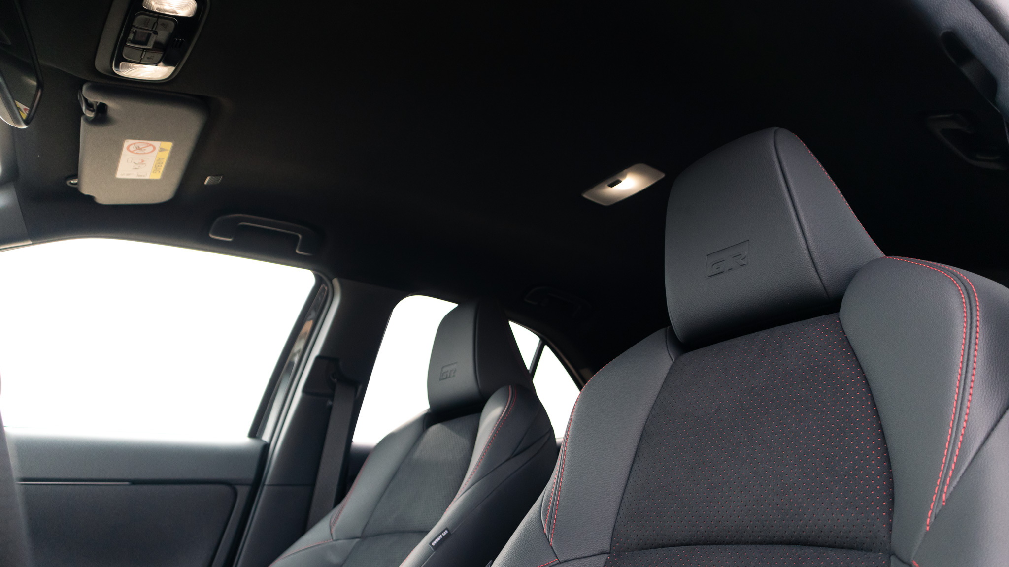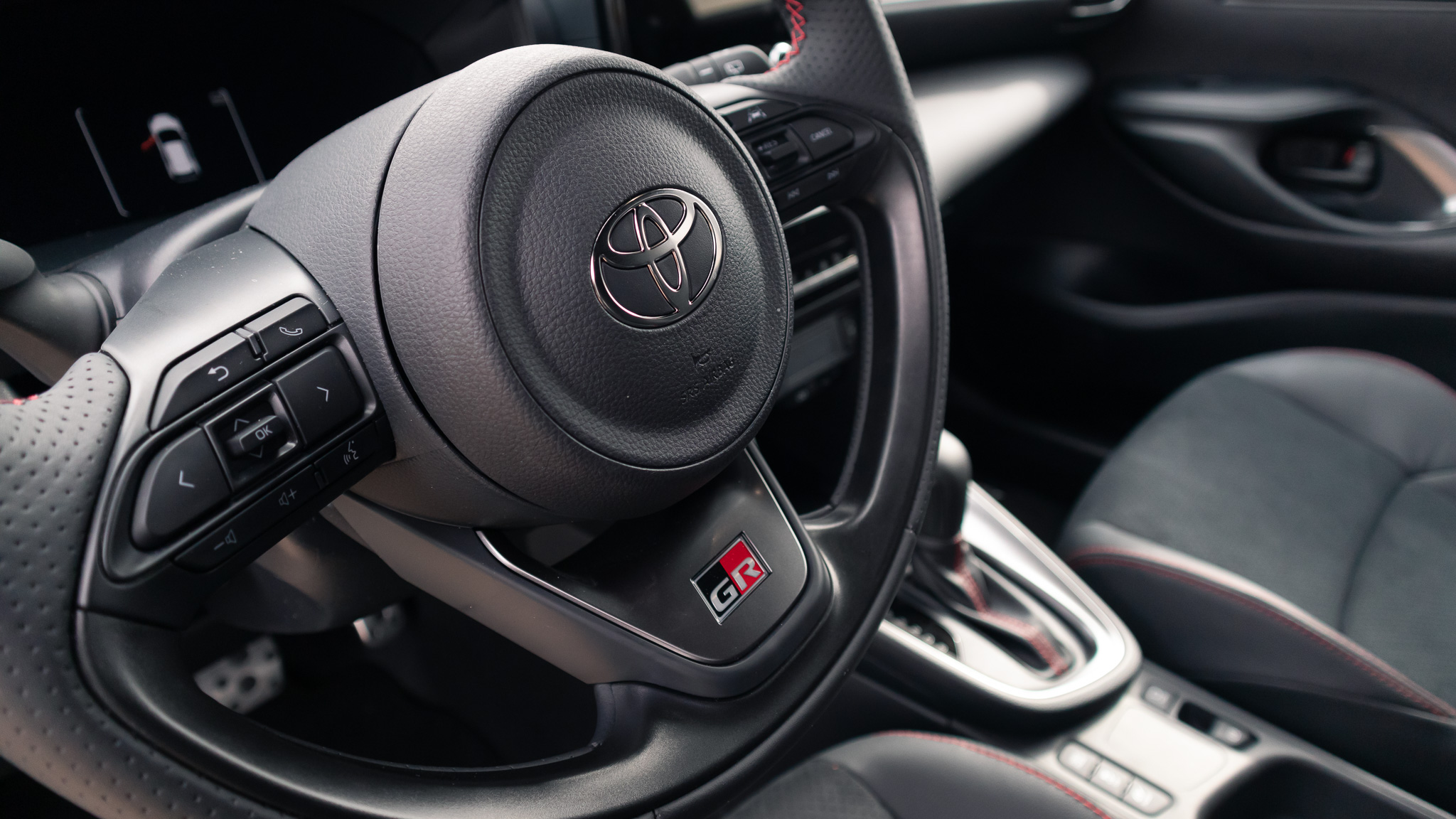Estética GR Sport: kit aerodinámico agresivo, llantas de 18″ bitono, interior deportivo con asientos alcántara, volante achatado y pantalla de 10,5 pulgadas con navegación integrada y asistencias como alerta de tráfico cruzado o parking semiautónomo.