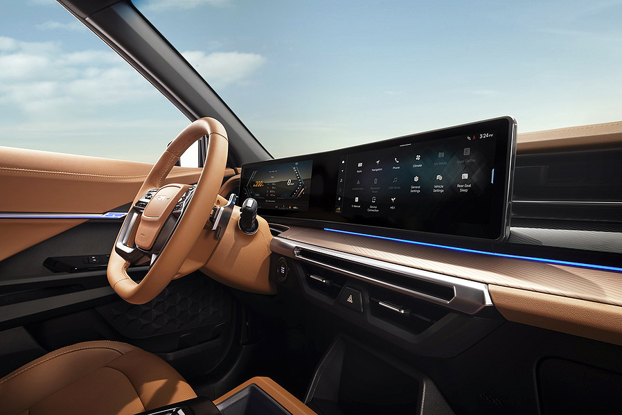 El conjunto e-DHT (que incluye motor térmico, eléctricos, transmisión y unidades de control) se complementa con una batería de iones de litio de 1.83 kWh y 353 V, pesando solo 40 kg. El motor de gasolina, diseñado específicamente para híbridos, incorpora ciclo Miller, turbocompresor de geometría variable (VGT).