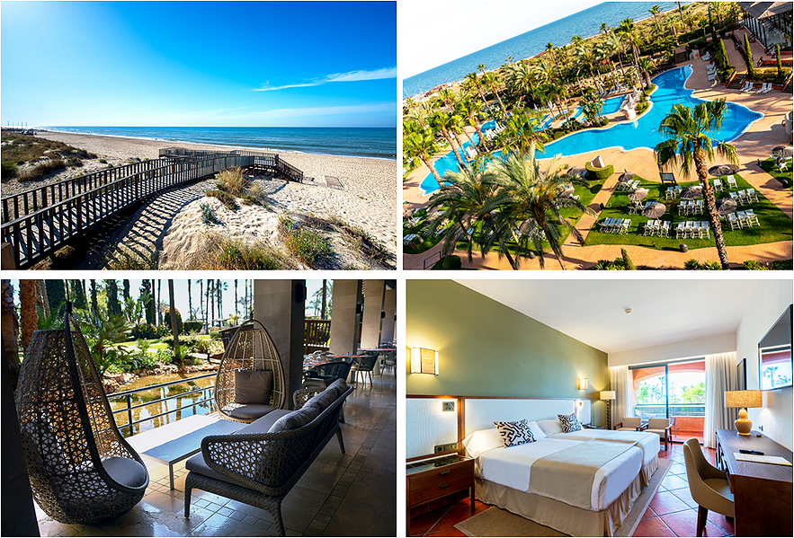 El hotel cuenta con amplias instalaciones que incluyen piscinas, spa, jardines y restaurantes como “Los Porches”, “El Mirador” y “Terraza Golf”, diseñados para disfrutar del entorno costero más allá del verano. La zona es perfecta para actividades al aire libre, especialmente deportes náuticos como kitesurf, surf, kayak, paddle surf o navegación en velero, donde los visitantes pueden participar activamente, convirtiéndose en marineros por un día.