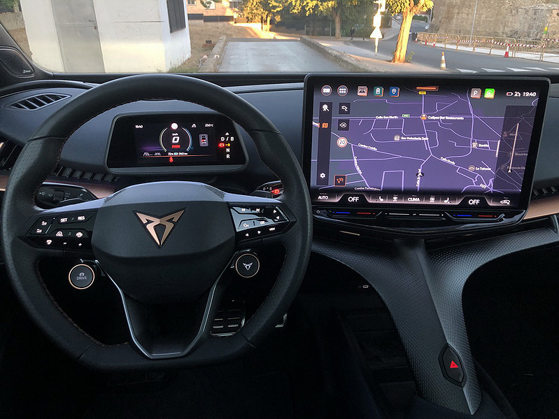 Interior del CUPTRA Tavascan donde podemos apreciar el Y-bone o columna vertebral en fprma de “Y” en el centro.