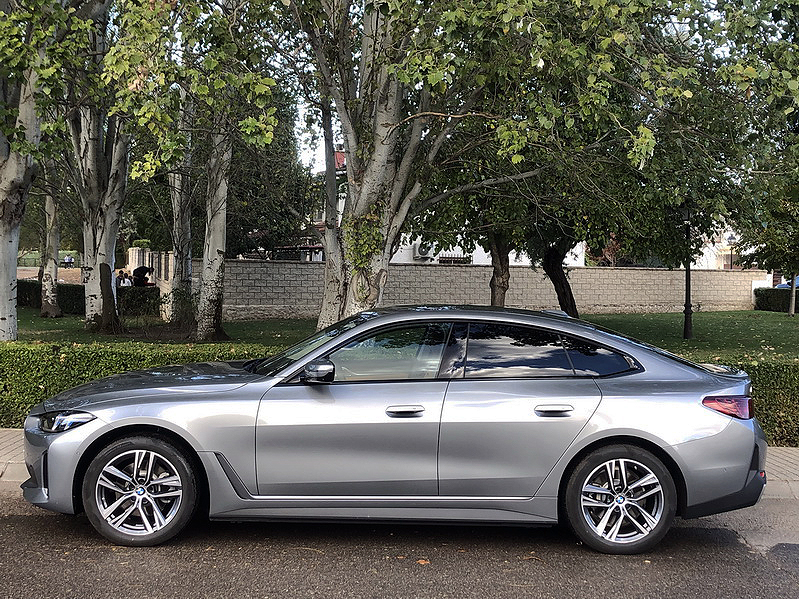 El diseño exterior del BMW i4 eDrive35 Gran Coupé es un equilibrio perfecto entre elegancia y funcionalidad, con una silueta aerodinámica que evoca la deportividad de un coupé pero ofrece la practicidad de un sedán de cuatro puertas. Mide 4.783 mm de largo, 1.852 mm de ancho y 1.448 mm de alto, lo que le confiere una presencia imponente en la carretera sin ser excesivamente voluminoso.