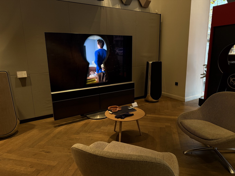 Beovision Theatre & BeoLab 28: Similar al anterior, pero con altavoces columna BeoLab 28 que incorporan sonido adaptativo y diseño escultórico. Ofrece personalización total para una experiencia audiovisual premium, con bass potente y claridad excepcional.  (precio BeoLab 28, 16.500 €