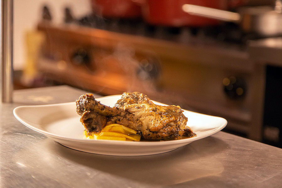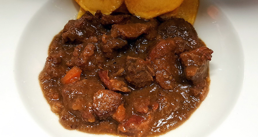San Gregorio: bacalao en caldereta y careta de cerdo adobada.