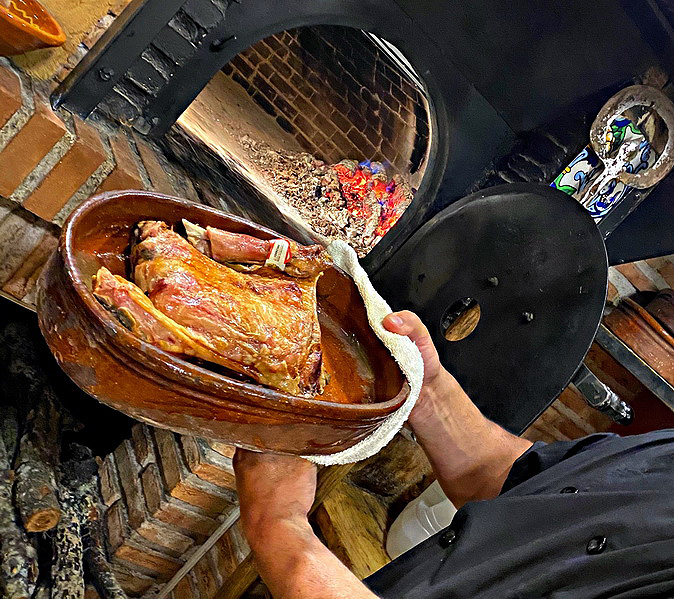 En los asadores de Riaza, el cordero lechal —cocinado solo con agua y sal— un auténtico manjar de dioses, se doraba lentamente en hornos centenarios, desprendiendo una fragancia que es pura esencia de Castilla.