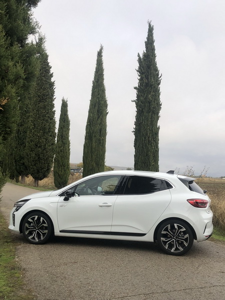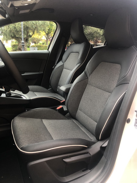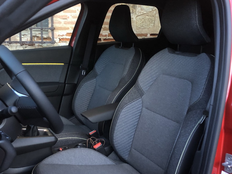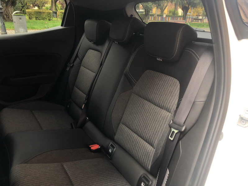 El habitáculo ofrece una pantalla táctil vertical de 9,3 pulgadas, cuadro de instrumentos digital y conectividad smartphone completa. El espacio trasero es razonable para el segmento B (dos adultos viajan cómodos), mientras que el maletero del híbrido se queda en torno a 254 litros, algo inferior a las versiones gasolina, 340 litros,  por la ubicación de la batería.