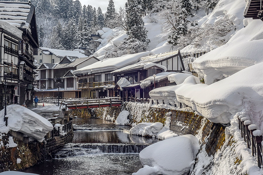 - Preciosa estampa invernal de Ginzan Onsen, Yamagata