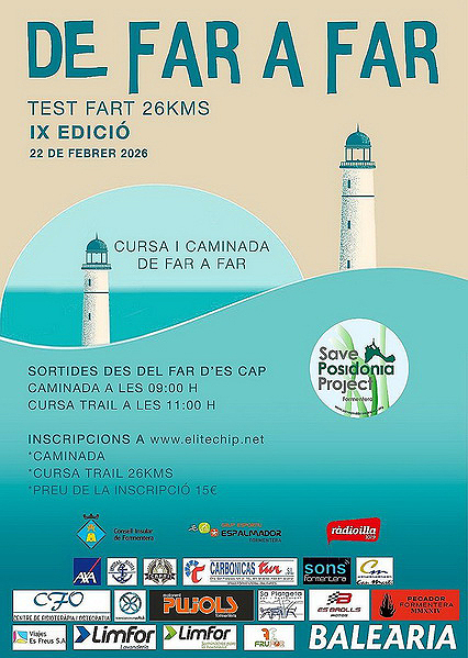El 2 de mayo se realiza el VI Open Caza Fotosub Apnea 2026 (fotografía subacuática en praderas de posidonia) y la Marnatón Edreams Formentera by Baleària (natación en aguas abiertas con distancias de 8 km, 4 km y 2 km).