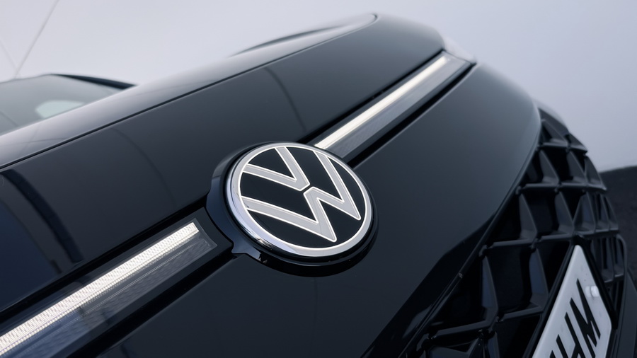 De frente impresiona la parrilla ancha y horizontal, flanqueada por unos faros LED Matrix IQ.LIGHT que son de serie en esta versión. Estos faros van conectados al logotipo de Volkswagen iluminado en blanco mediante una estrecha tira luminosa. Los grupos ópticos proporcionan una iluminación adaptativa excelente. El capó más esculpido y los paragolpes R-Line con tomas de aire más marcadas acentúan el conjunto.
