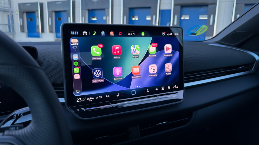 Gracias a esos 12 cms. extra de longitud, el habitáculo es notablemente más generoso. Delante, los asientos R-Line ofrecen sujeción lateral excelente y ajustes eléctricos. Detrás, incluso con dos adultos de más de 1,85 m delante, hay espacio para las piernas y la cabeza de tres ocupantes similares. Una mejora palpable respecto al modelo anterior.